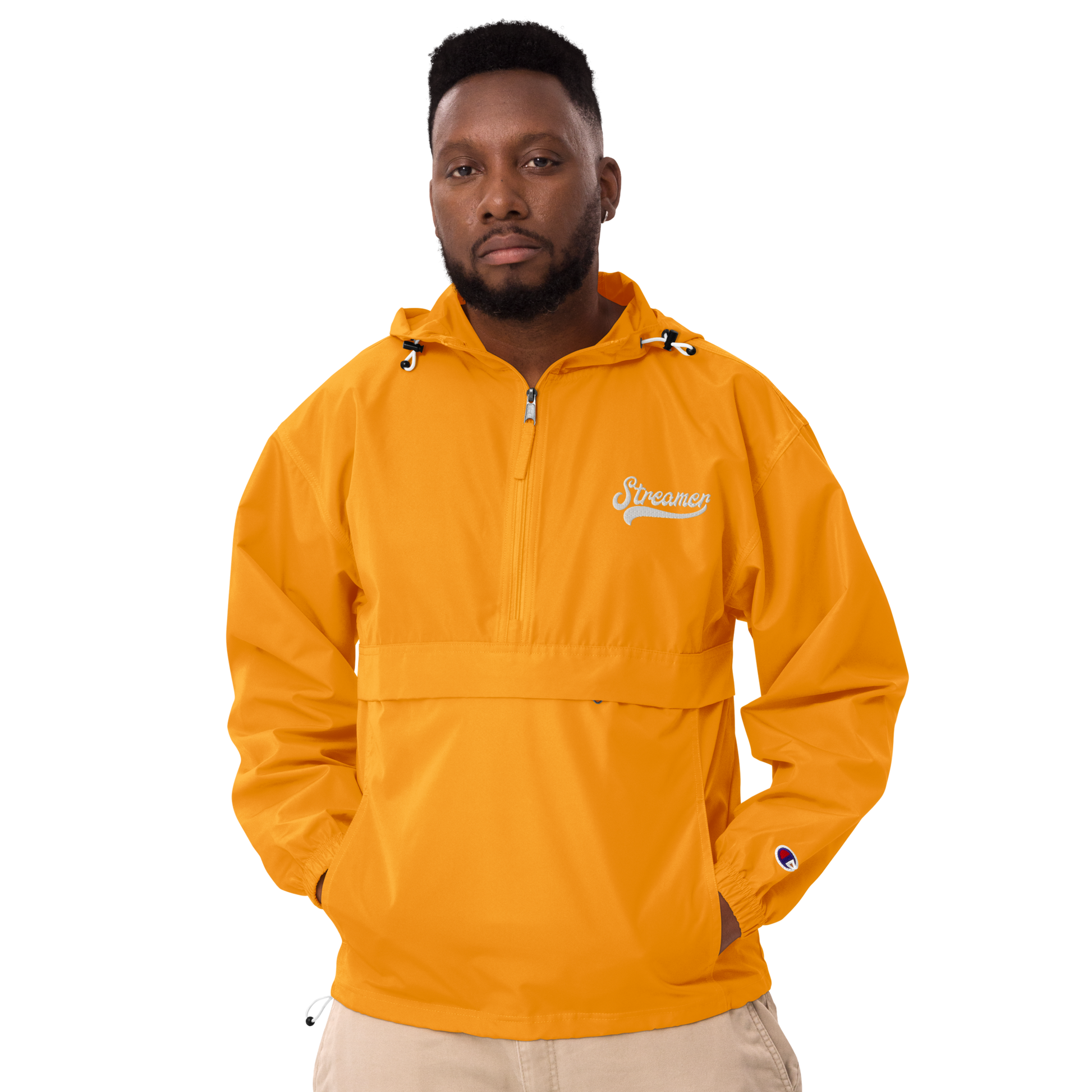 Protect yourself from the elements with this Champion packable jacket. This wind and rain resistant polyester jacket with a detailed embroidery design has a practical hood, front kangaroo pocket, and zipped pouch pocket which you can pull out and use to scrunch the jacket into for convenient storage.