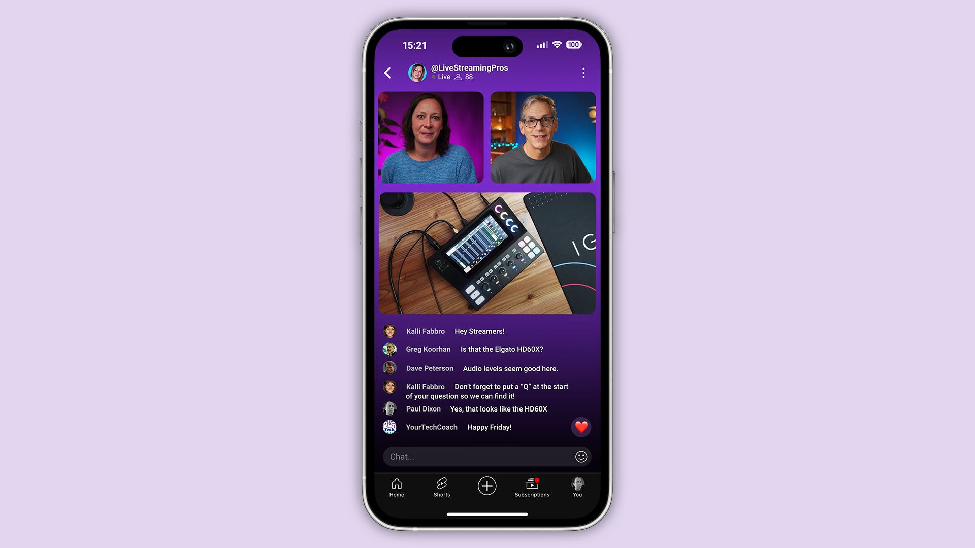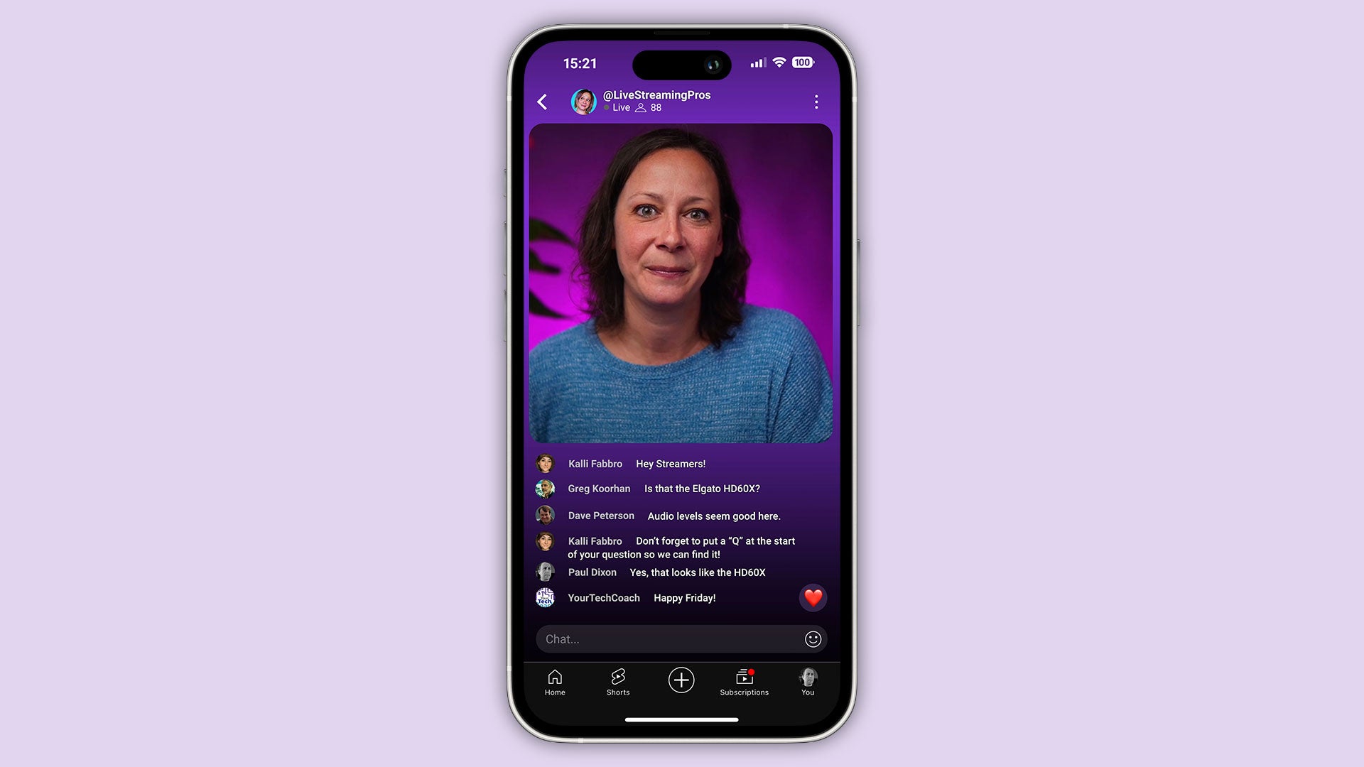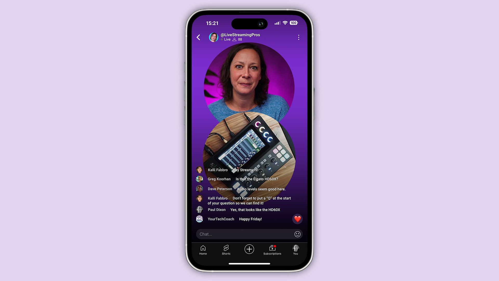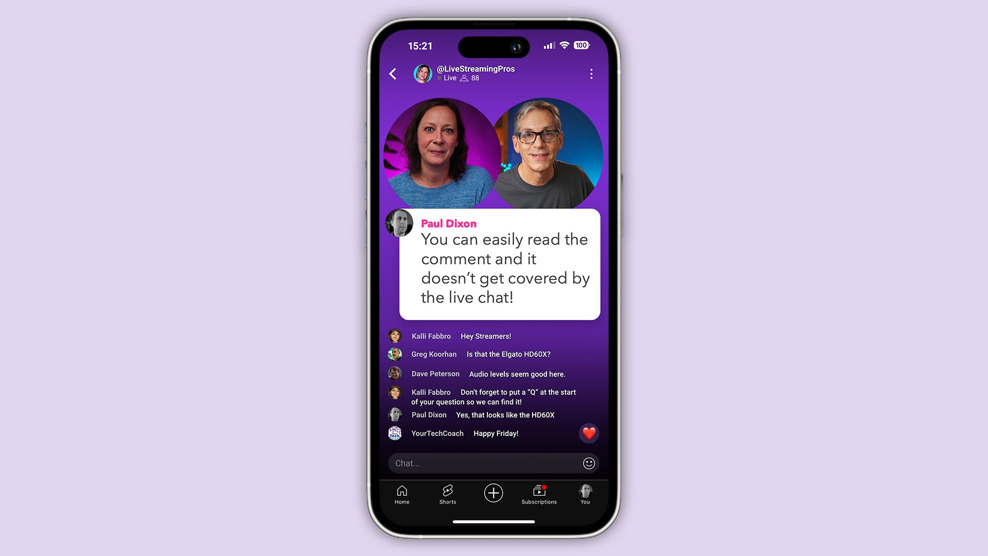 Viewers watching via YouTube on desktop will see black bars either side, and a space where the mobile chat appears. For them the chat appears alongside, not overlayed.