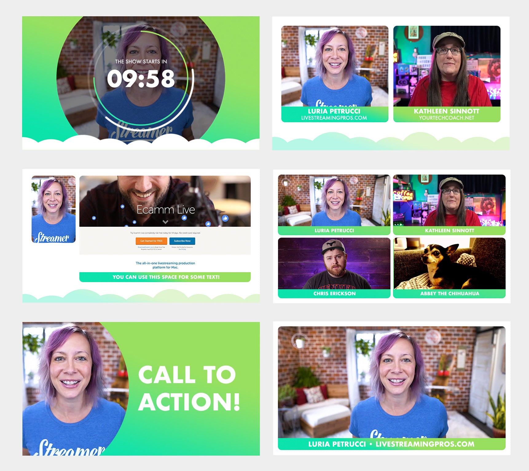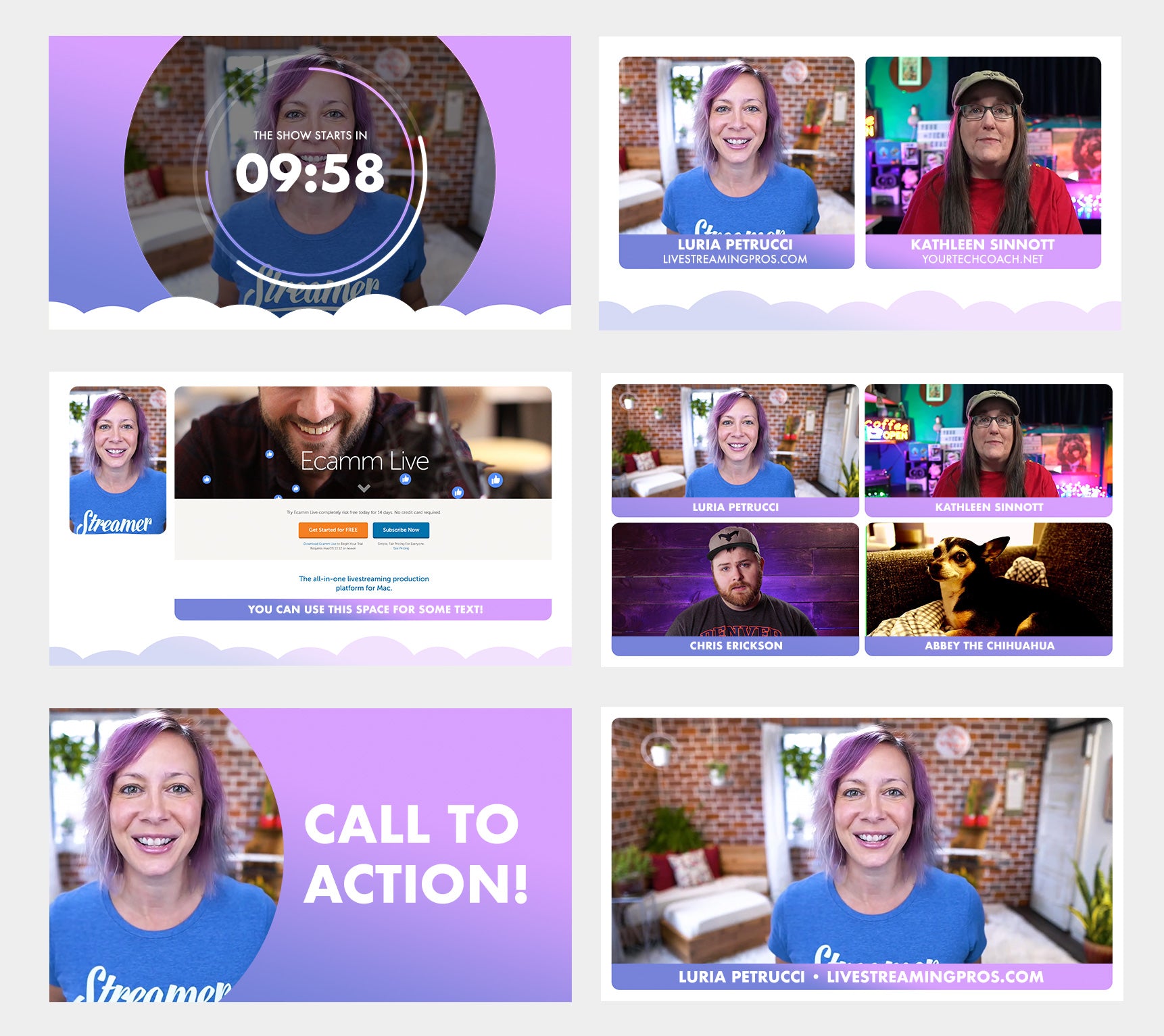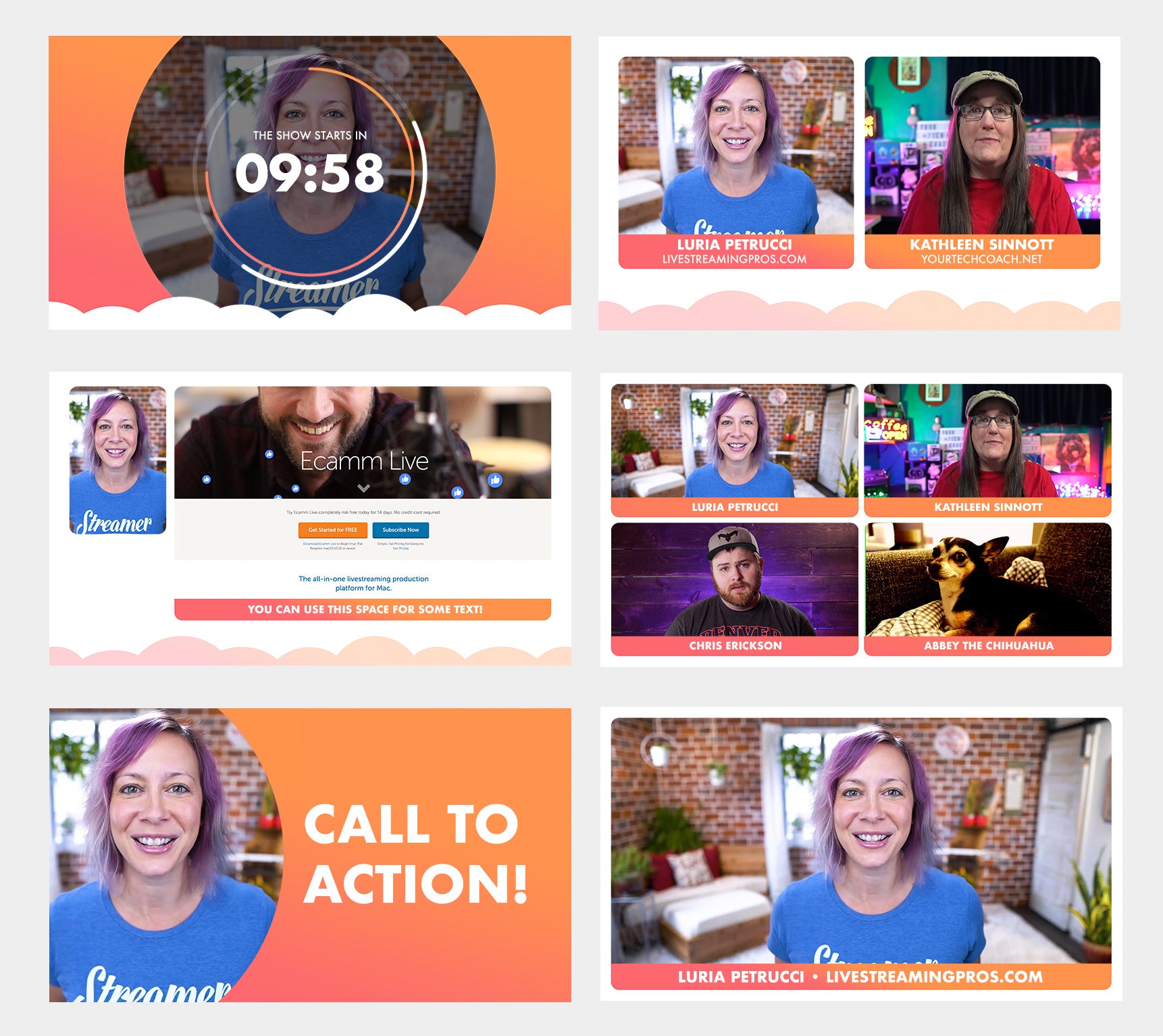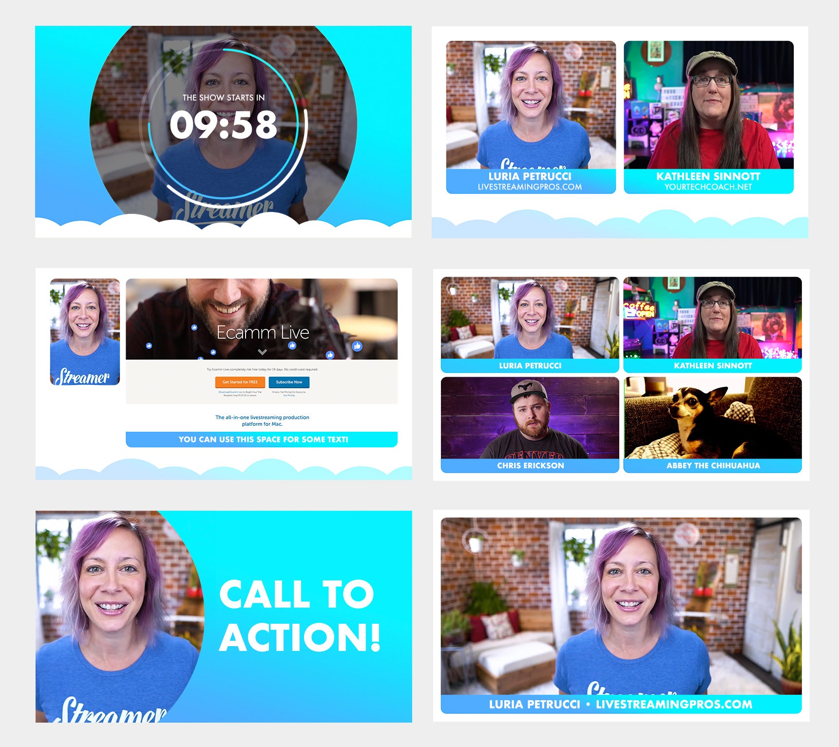 The overlays can be used as they are, but many of them include space where you can add logos, images, text, tickers, or widgets. All of the interview layouts have spaces for names.