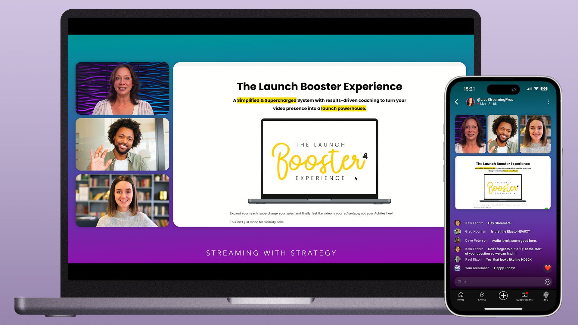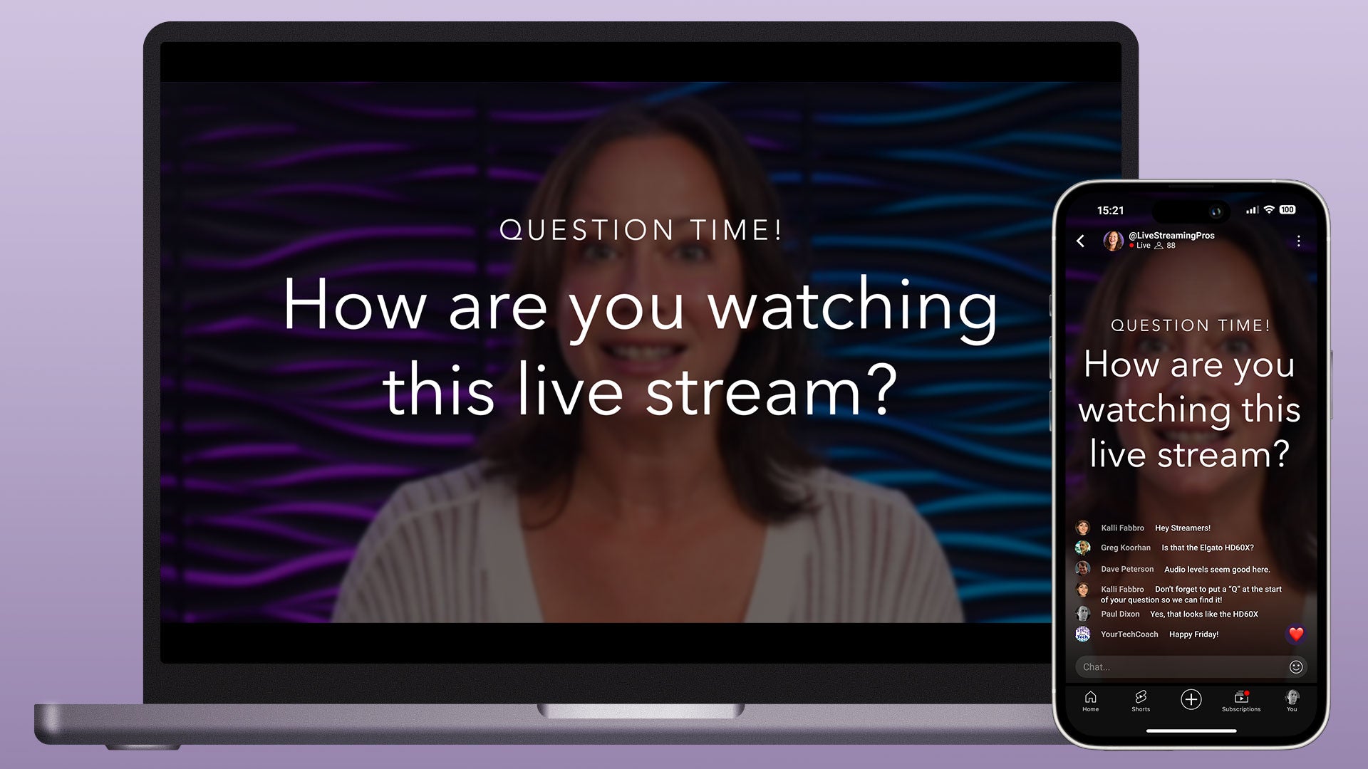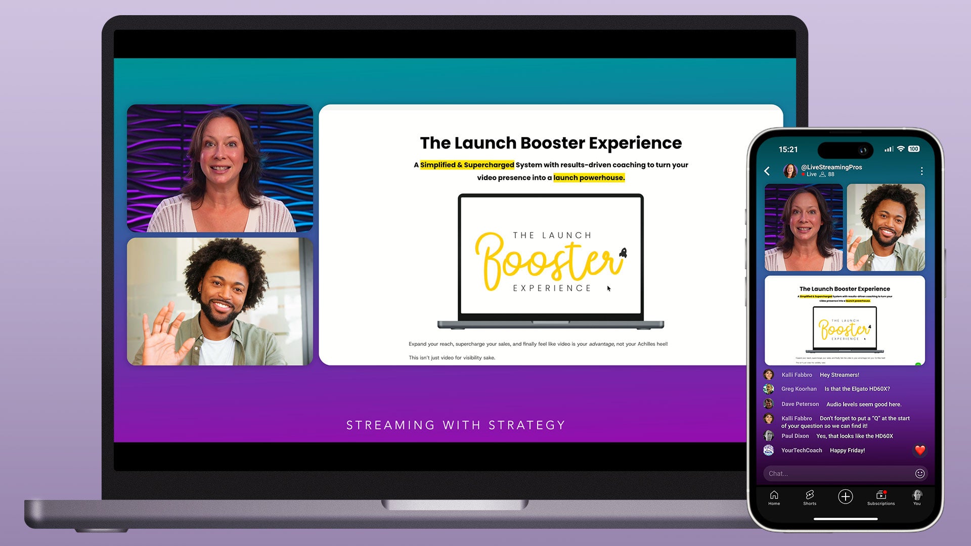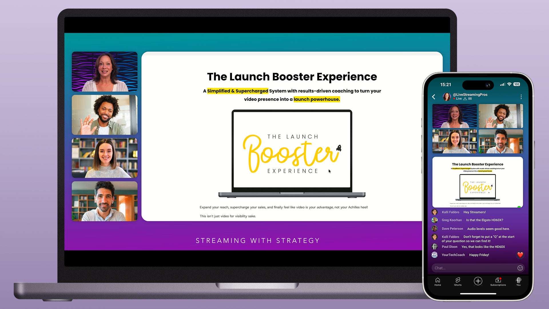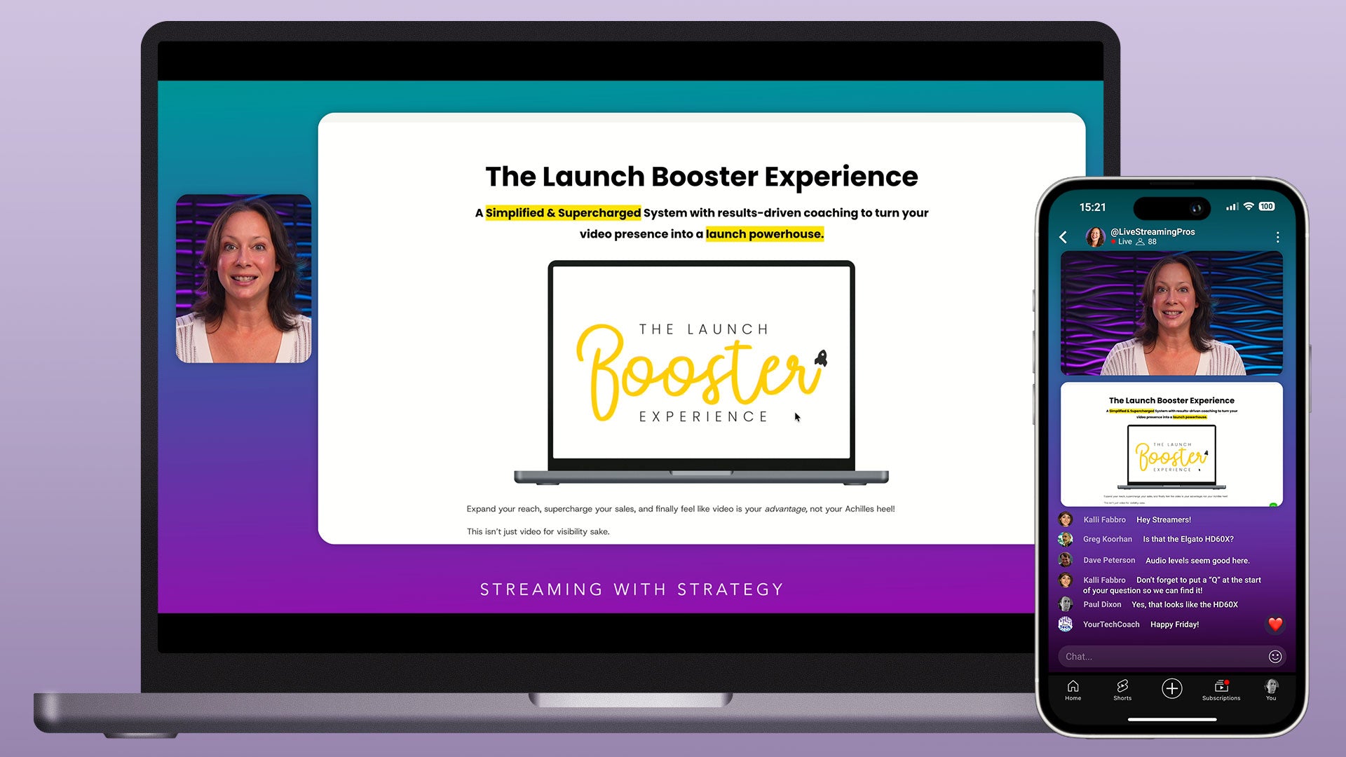 This profile is designed for Ecamm's dual mode. Each scene includes a horizontal and a vertical layout. The horizontal layout is optimized for larger screens such as computers, tablets, and TVs, while the vertical layout is designed for mobile viewing.
