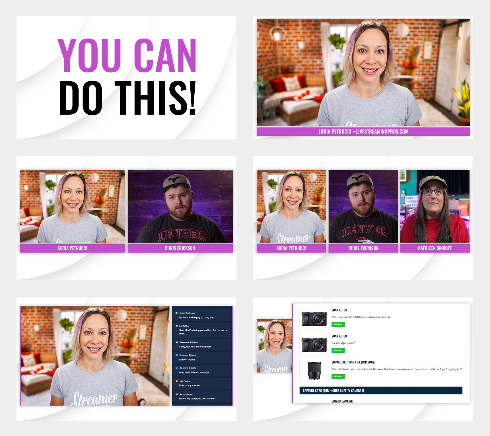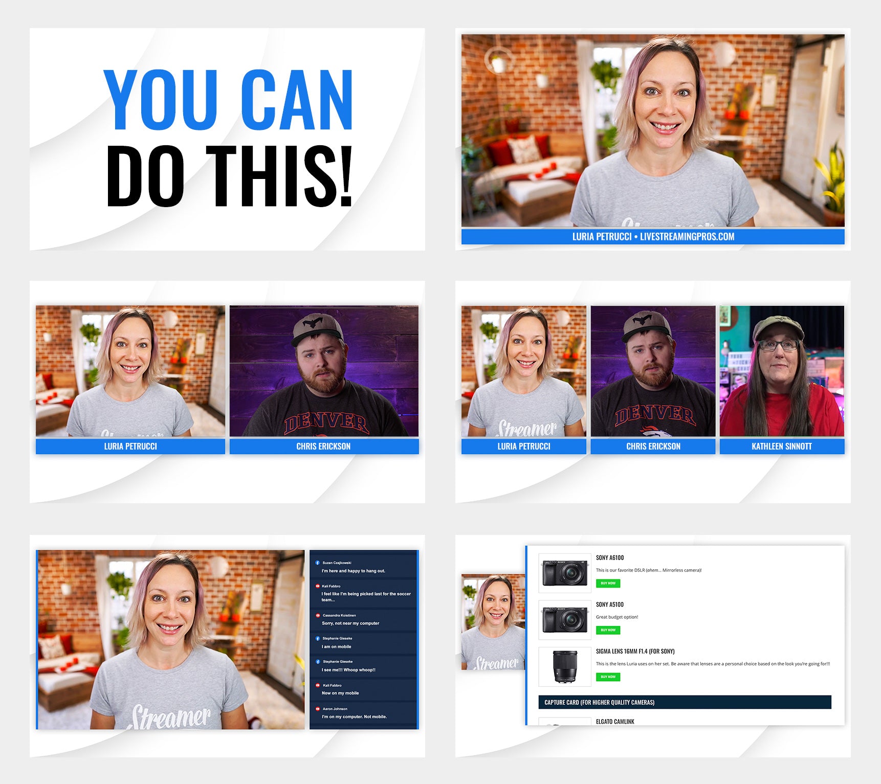 The overlays can be used as they are, but many of them include space where you can add logos, images, text, tickers, or widgets. All of the interview layouts come with versions with and without spaces for host/guest names.